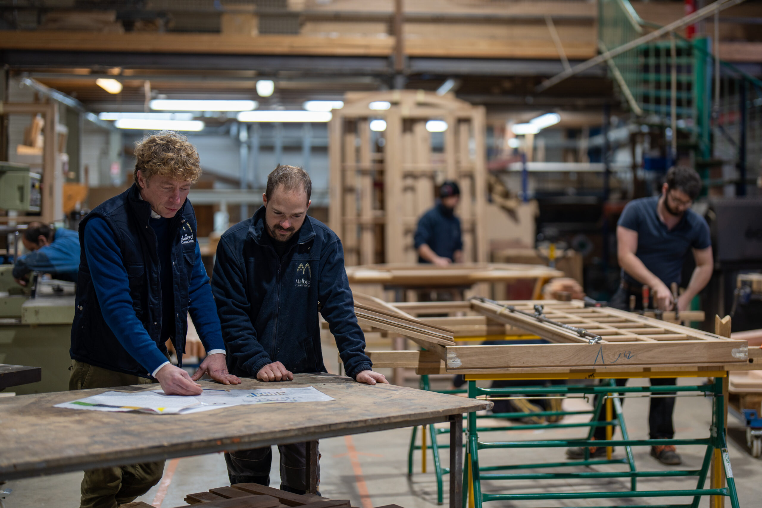 Les différents ateliers (ébénisterie, ferronnerie, dorure, polychromie, tableaux) travaillent en étroite collaboration afin de mettre leurs compétences au service des œuvres.